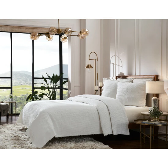 A lofty waffle weave of fine cotton with a double raw edge flange.Β