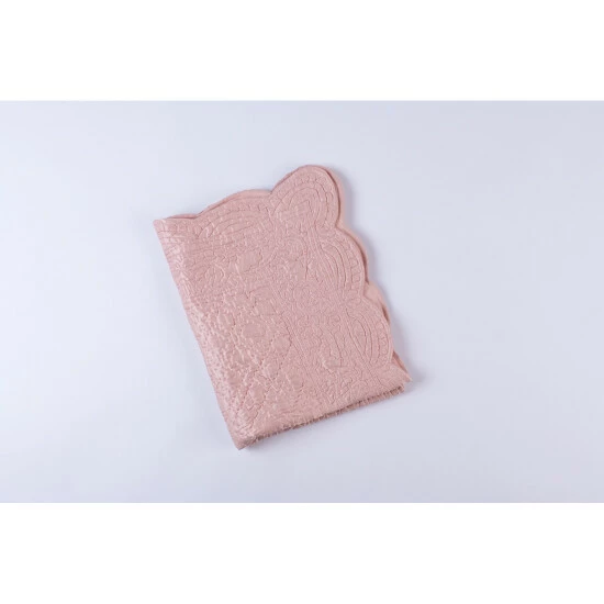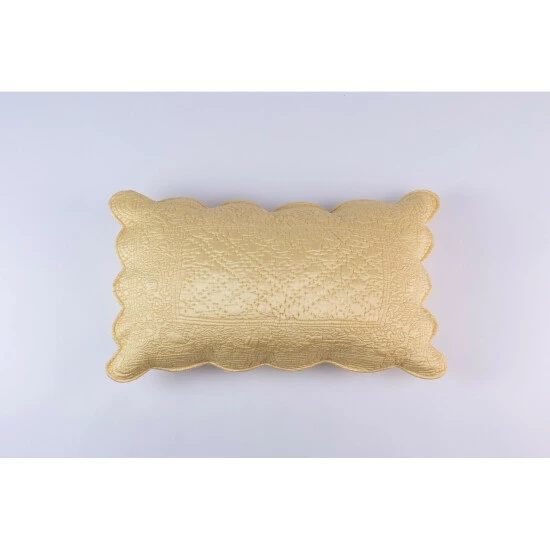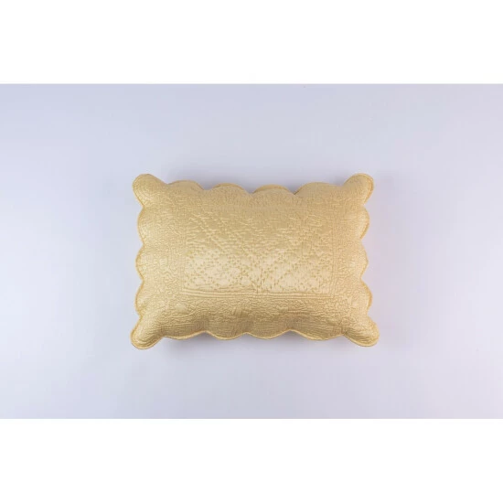 A charming satin silk pillow sham with scallop edging and hand quilting in the center with trupunto quilting on the sides.