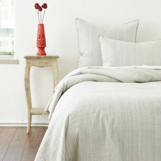 Refresh the look of your bedroom with this soft, grey stripe duvet cover. The subtle striped pattern incorporates various shades of grey, white, and ivory to create a soothing palette that will complement any decor. Β