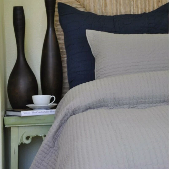Urkin is constructed of 100% fine cotton front and back, and machine quilted in a tight block pattern. The scale of the pattern provides for a structured finish that takes on a modern edge.
