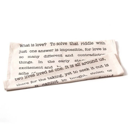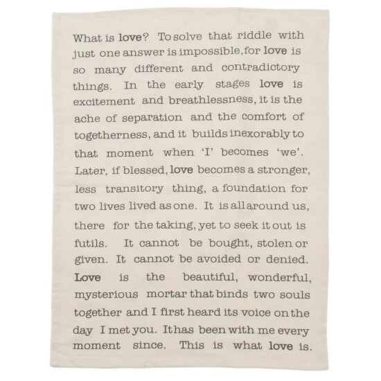 Ponder the meaning of love with this set of two ivory-colored tea towels in your modern kitchen. Tailored from soft, machine-washable cotton that is easy to clean, these long-lasting towels dry fine china and tea sets with little wear as you entertain.