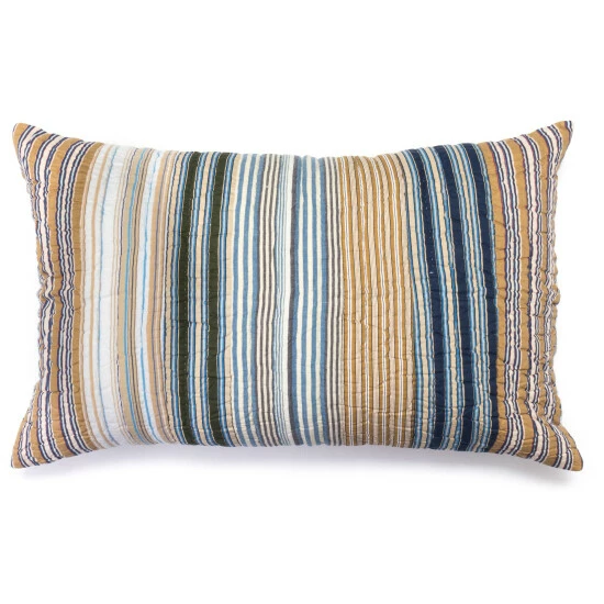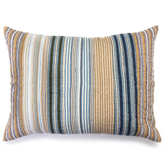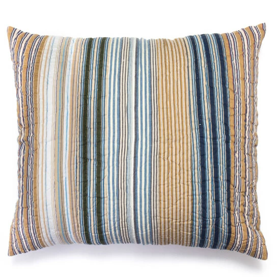 Multi-tone stripes in shades of tan and blue come together in this quilted sham to create a lively, but understated look. Insert not included.